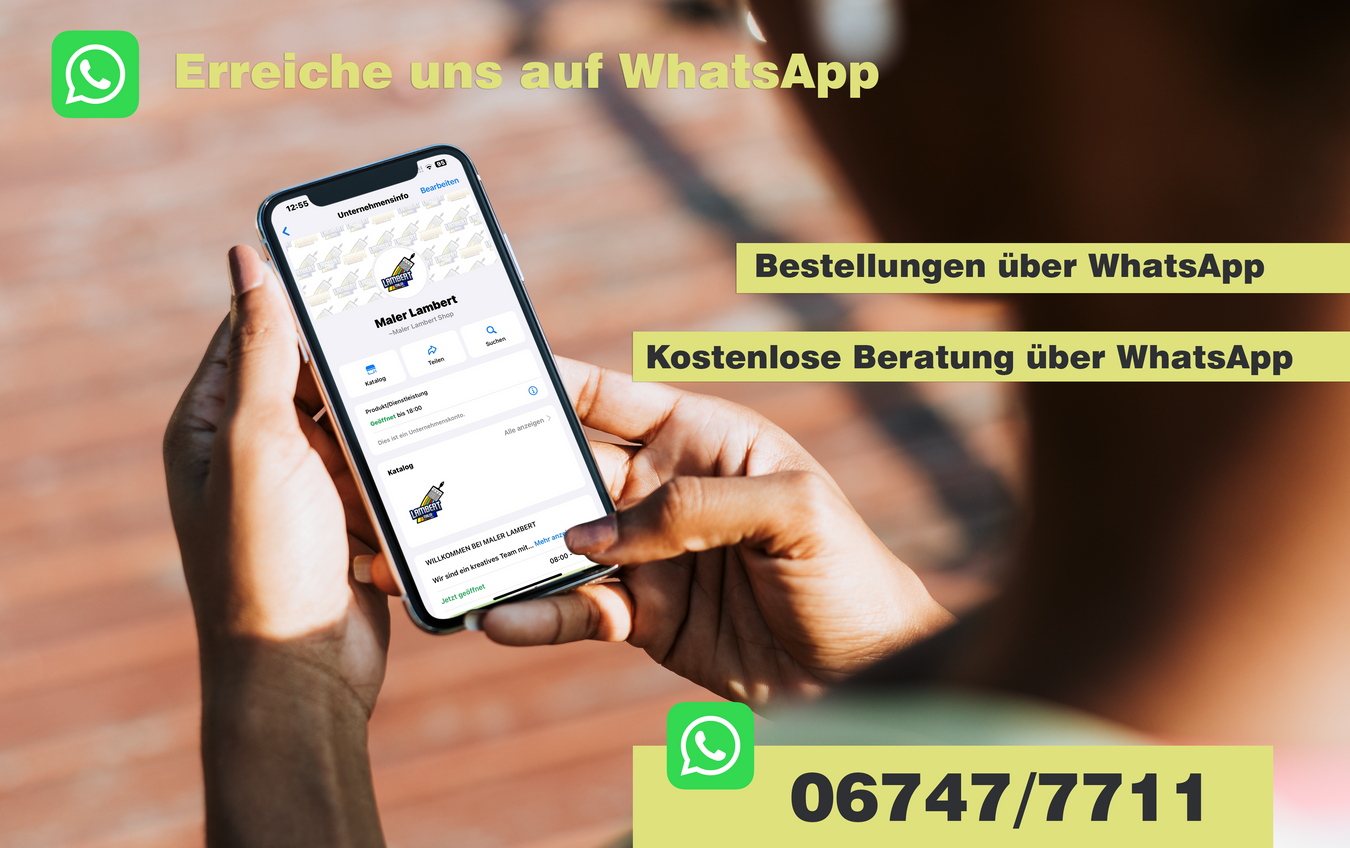 Melde dich gerne bei uns über WhatsApp unter 06747/7711, dort wirst du immer von einem unserer Malermeister beraten. Auf WhatsApp sind wir täglich von 8-20 Uhr erreichbar.